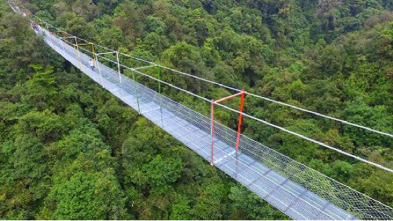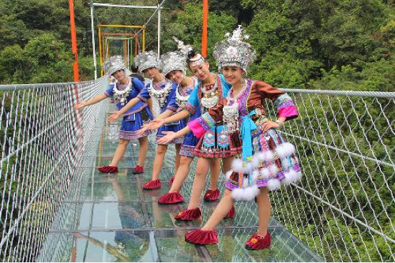 双龙沟的玻璃桥(表白桥)是广西第一条悬索玻璃桥,总长199.9米,高52.0米,象征着男女间只要大胆表白,勇敢跨越“我爱你”,两人相爱就可长长久久。