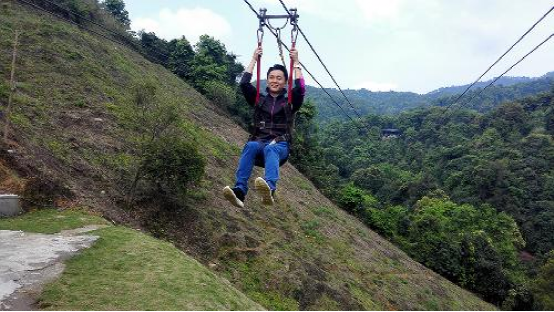 高空滑索简介:融水双龙沟原始森林景区内‘滑索’是广西目前跨度最长的高空滑索。索道全长528米,高空落差45米,相当于15层楼高,设有3组滑道,3人可同时自由滑行,至上而下到达终点约50秒的时间,是一项具有挑战性、刺激性、参与性、娱乐性为一体的森林高空索道,具有惊、奇、险的高空滑翔快感;体验天马行空,小鸟林中翱翔的感觉;享受速度的激情与有惊无险的轻松快乐;是原始交通工具与现代高运动为一体的完美结合!