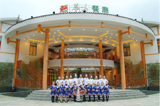 双龙沟梦呜餐厅主打民族特色风味餐,游客在餐厅用餐可以观看苗族芦笙歌舞表演,品尝特色风味美食,还可以体验到苗族“呀——呜”喊酒习俗,和“高山流水”敬酒,来双龙沟原始森林度假区旅游一定给你留下美好的回忆。
