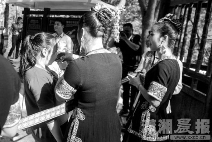 这里除了有侗锦,当然少不了风雨桥。刚进皇都侗文化村的村口,就有一座风雨桥。这座风雨桥里有三个亭子,分别供奉了土地神,关公和文昌星君。湖南省文博副研究馆员胡群松说,供土地神是保佑一方平安,供奉关公是崇拜他为人正直,敬文昌君表达了对汉族文化的传承。
