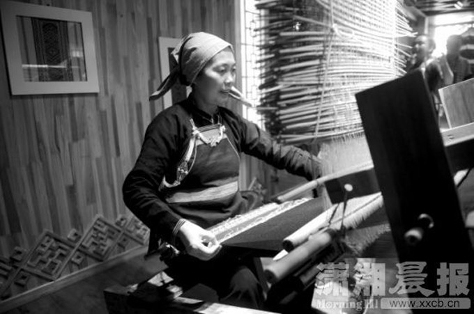 侗锦,需要经过十几道工序,而这些工序,全部都由手工完成。