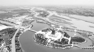 从空中俯瞰“塞上湖城”银川市。 于晶摄