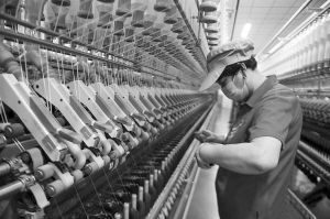 在位于固原市经济技术开发区的宁夏丰源纺织厂,工人在机台上忙碌。 冯开华摄