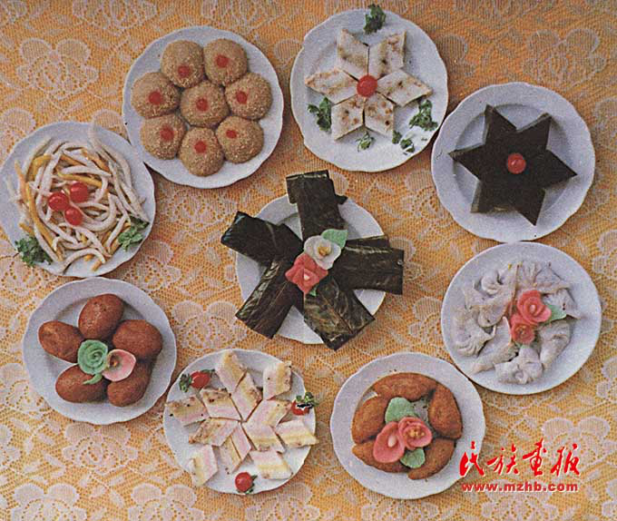 少数民族的饮食文化也被吸收进早茶里,这是各种精美茶点