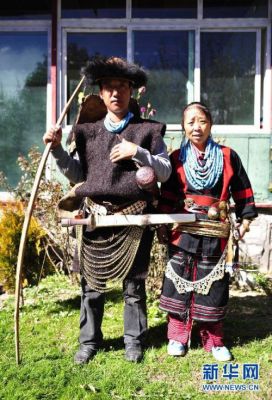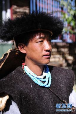 珞巴族群众在展示传统服饰(资料图来源:新华网)