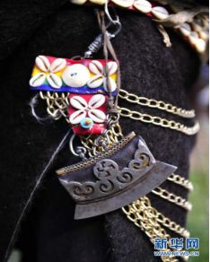 珞巴族男女都喜爱系一条考究的腰带,有藤编的,皮革制作的,也有用羊毛编的,并织有各种彩色图案。腰带除用来扎系衣裙外,还用来悬挂小刀、火镰和其它铜、贝制作的饰物。