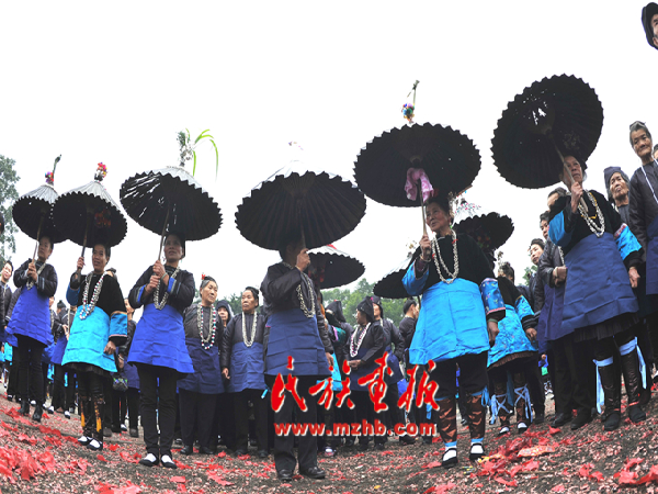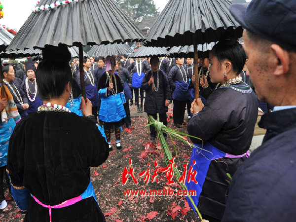 侗族妇女举着的黑伞是供”萨玛”灵魂寄托的