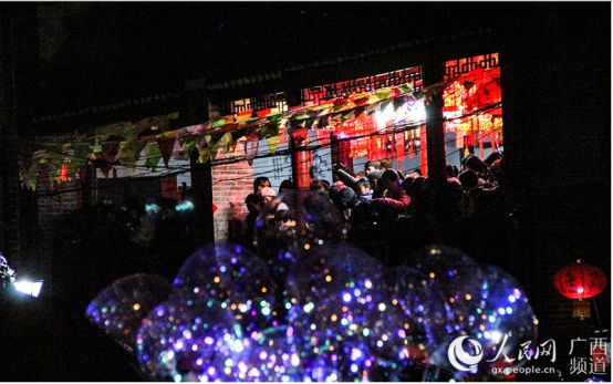 神楼上的盏盏花灯寄托着瑶乡群众对下一代的祝福(吴明江 摄)