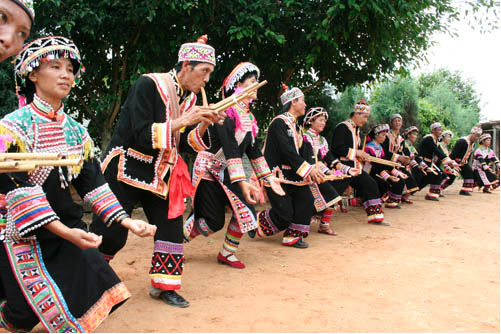 这一竹管加葫芦的器乐被流传了下来,形成了今天拉祜族人人喜爱的芦笙。拉祜族也因此继承了祖先的遗风——善于狩猎,喜欢“打歌”。
