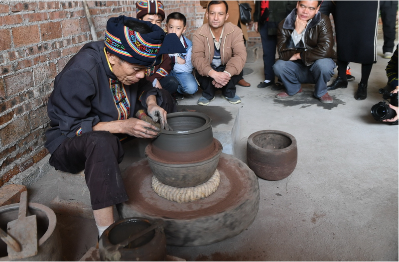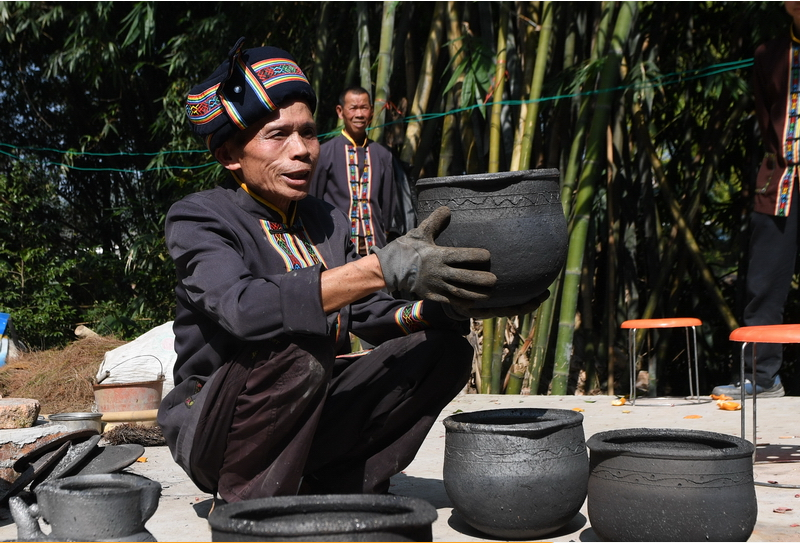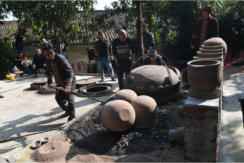 仫佬族群众用大铁盖把煤砂罐生坯罩上