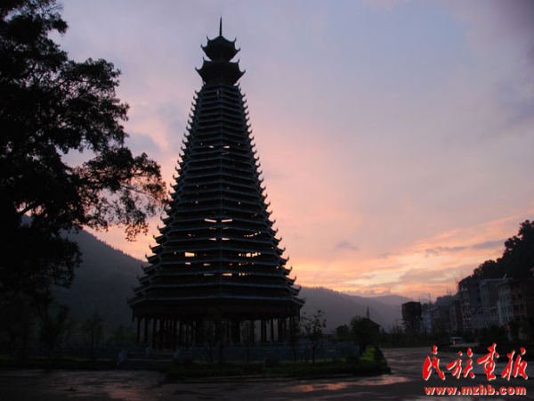 来到侗乡,无论站在寨子的哪边望去,都能看到一座既像宝塔又像亭阁,既雄伟而又雅致的鼓楼。鼓楼是侗寨的标志,千百年来鼓楼一直伫立在侗寨的中心位置,成为侗寨一道亮丽的风景。