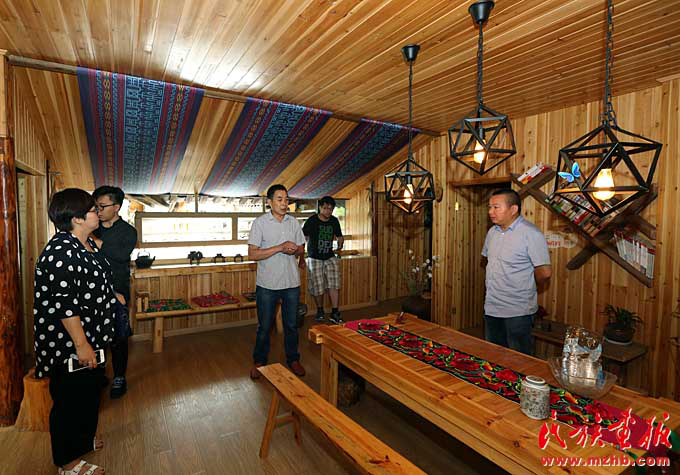 沙溪村支部书记蓝红星(右三)向客人讲解沙溪村的民宿情况