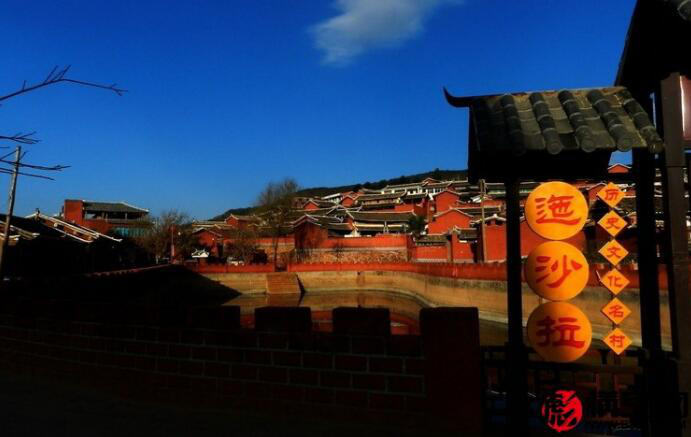依平缓的金沙江西岸台地而建的迤沙拉民居,大都采用青瓦白墙、土木结构,呈现出一派苏皖小镇的风貌。村内小巷纵横,密如蛛网;家家高墙深院,院院紧邻;门前有巷,巷巷相通。胡家巷、张家巷……一路走来,犹如行走在时空的迷宫之中,但见深院、高墙、深巷,“廊腰缦回,檐牙高啄,各抱地势,勾心斗角”之势醒目。