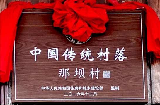 荣获中国传统村落那坝村牌匾(乡政府提供)