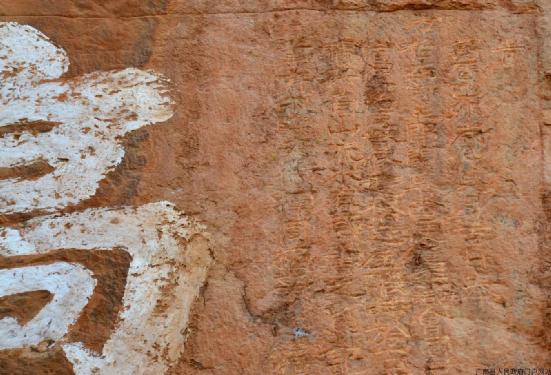 广南莲郡古城自古是云南通往广东、广西以及沿海地区古驿道的重要驿站,亦为夜郎(贵州且兰)通往交趾(越南)的重要通道,被誉为“滇东南重镇”和“滇桂走廊”。近千年的“滇铜外运、粤盐入滇”多经县城,途经特磨古驿道的者兔乡里夺村对面 “那岜来”(壮语称的地名)“高山流水”处,为清代广南府的古十七景之一。该奇景位于里夺村对面的悬崖绝壁上,崖上刻有“高山流水”四个大字,每字径0.6米,此山高大奇特,山崖高数百米,壁面宽50余米,崖形多姿,奇峰林立,崖下是古驿道,崖脚出水深潭,常年灌溉着里夺坝子数百亩良田,实不愧为崖壁自然景观。