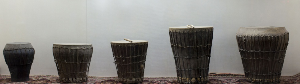 罐状的击鼓乐器“纳格拉”,鼓的腔体最初取胡杨树干做材质,挖空上蒙羊皮,后发展用生铁铸就。用木棍击奏也从“两面相击”演变到“一面相击”的方式。按形制大小和音高的不同,分为头鼓、中鼓、尾鼓。演奏时,头鼓在整个乐队中起着指挥的作用,常作复杂的变奏;中鼓与头鼓轮流加花,奏出的是基本节奏型;乐音低沉的尾鼓,演奏的是基本节奏。冬巴克鼓也是如此的击打乐器。