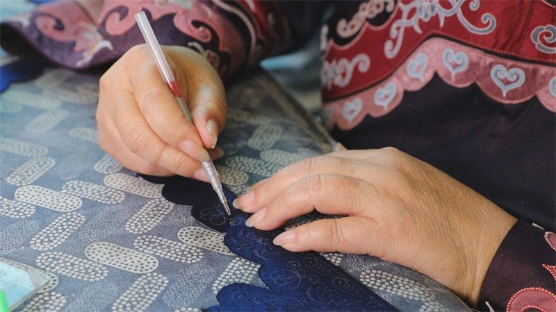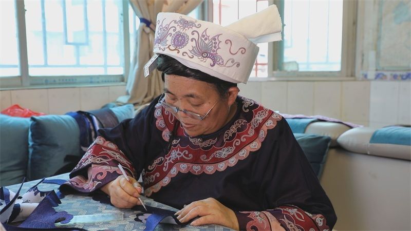 绚丽的色彩,坚韧的马尾,在王玉蕊灵巧的手中,渐渐化为布料上浮雕般温柔而祥和的图案。马尾绣陪伴了王玉蕊的一生,她希望以后有越来越多的人喜欢马尾绣,来学习绣马尾绣,传承好这门手艺。