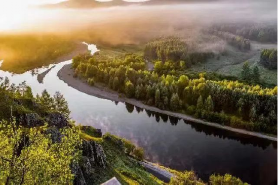 白鹿岛是莫尔道嘎国家森林公园尽头的点睛之笔。奔流不息的激流河在这里转弯,旭日发出的第一缕曙光从这里升起。这里的日出云海美得一塌糊涂,到此一游的游客不惜3点起床也要拍照留念。