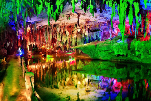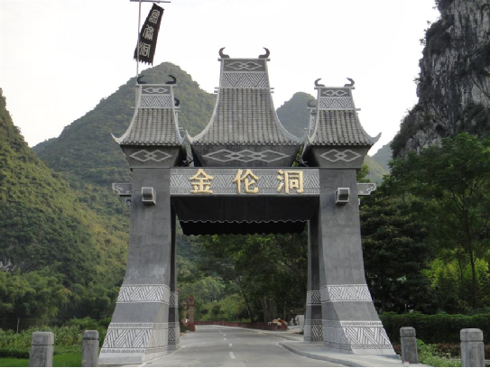 金伦洞景区是国家4A级景区,因本地壮族英雄韦金伦在此洞读书遇仙获宝传说而得名。1987年中英联合洞穴考察团对该洞进行为期27天的考察论证,确认金伦洞是广西喀斯特地貌最长、最大、最深的原始石漠溶洞,是世界一流溶洞,世界十大名洞之一。金伦洞共穿越12座山腹,行程近10公里,洞内景观天然造化,形态万千,幻象无穷,各种石柱、石花、石乳和石笋构成了雄伟壮观的十里画廊。洞内长达1.5公里的“天河倒影”堪称世界一绝:观赏洞顶长出的石笋石乳在水中的倒影,让人有如飞越北国,遥望大地冰峰雪原绵延千里。