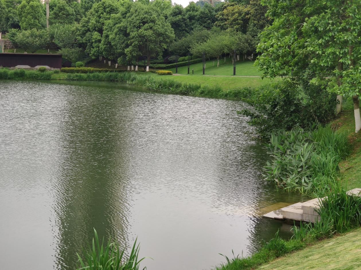公园的湖畔种植的水生植物,在经过的数年的生长后,形成了错落层次的景观,湿地成了水鸟栖息佳地,泉水潺潺,湖光优美。