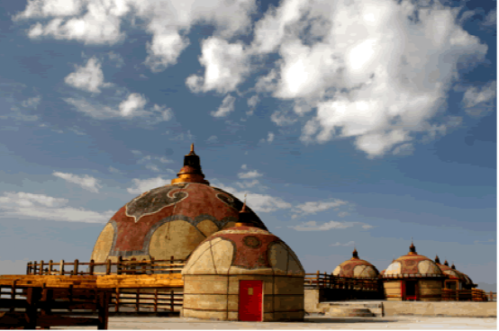 由蒙古包群组成,小镇两侧的缓坡上有大面积落叶松林,环境优美,是理想的度假休憩之地。